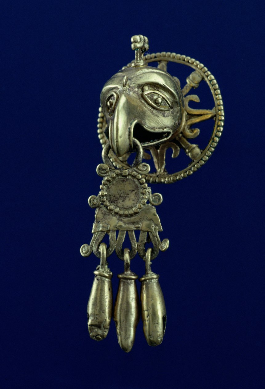 Lintujumalan huulitulppa (kulta)(Lip plug of bird god (gold))Mixtec |