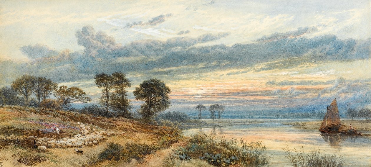Auringonlasku joen yli (wc paperilla)(Sunset over the River (wc on paper))Myles Birket Foster |