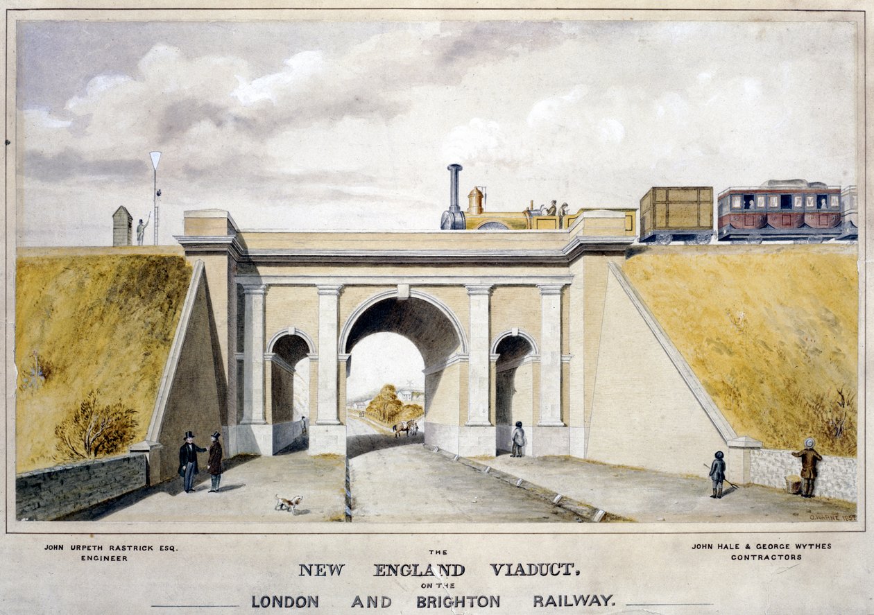 New England Viaduct Lontoon & Brightonin rautatien varrella, 1857(The New England Viaduct on the London & Brighton Railway, 1857 )O. Warne |
