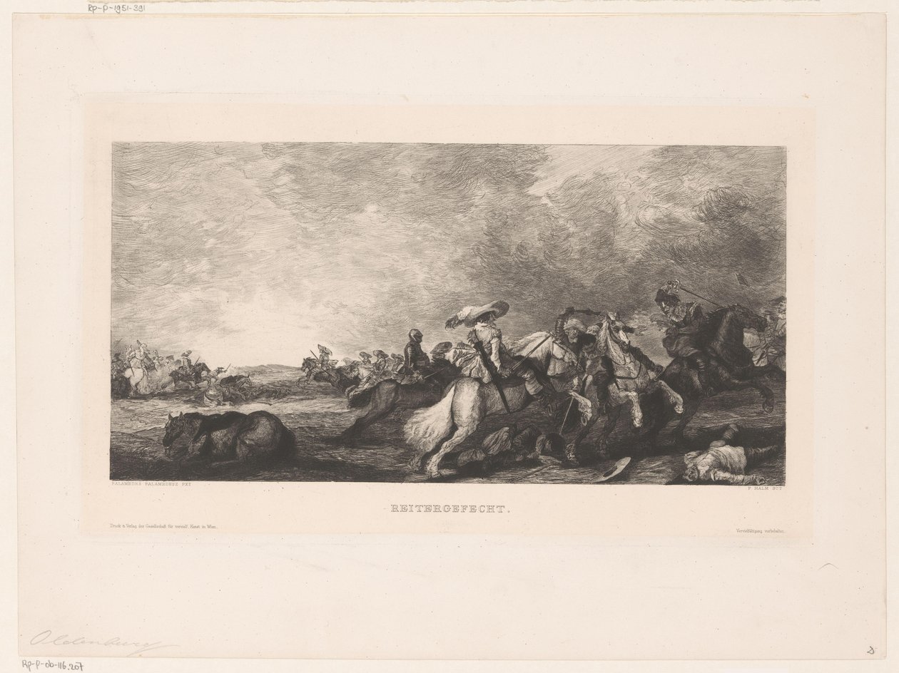 hevosurheilun taistelu Reitergefecht (otsikko objektissa)(Ruitergevecht Reitergefecht (title on object))Peter von Halm(print maker),Palamedes Palamedesz. (I)(after painting by),Gesellschaft für vervielfältigende Kunst(printer) |