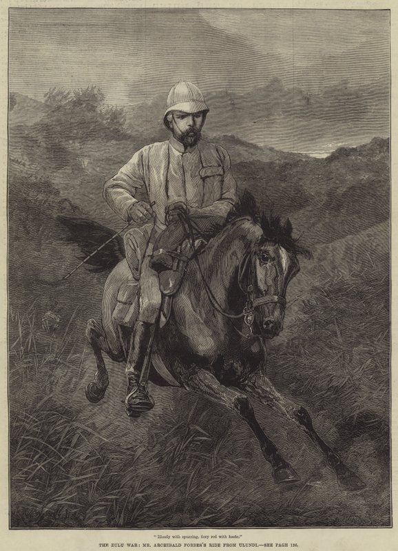 Zulusota, Archibald Forbesin ratsastaminen Ulundista.(The Zulu War, Mr Archibald Forbes's ride from Ulundi )Richard Caton Woodville junior |