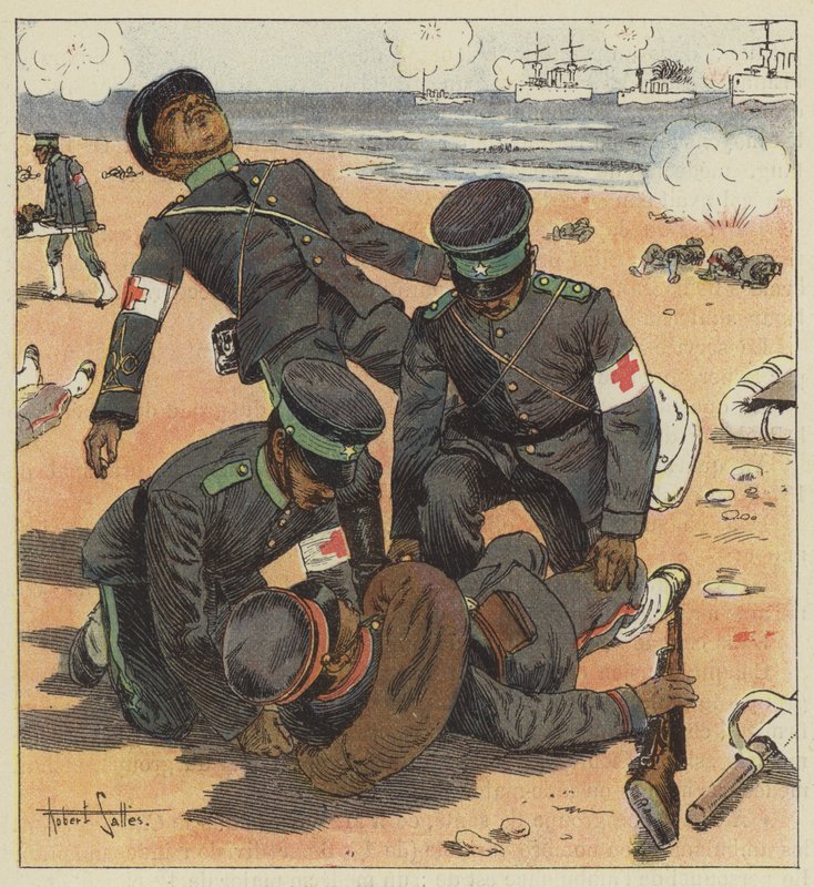 Japanilaiset paarit nostamassa haavoittuneita(Brancardiers japonais relevant les blesses )Robert Salles |