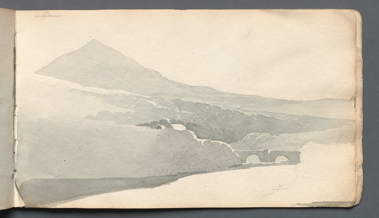 Luonnoskirja: Vuoristoinen maisema sillalla, 1814.(Sketchbook: Mountainous Landscape with Bridge, 1814. )Samuel Prout |