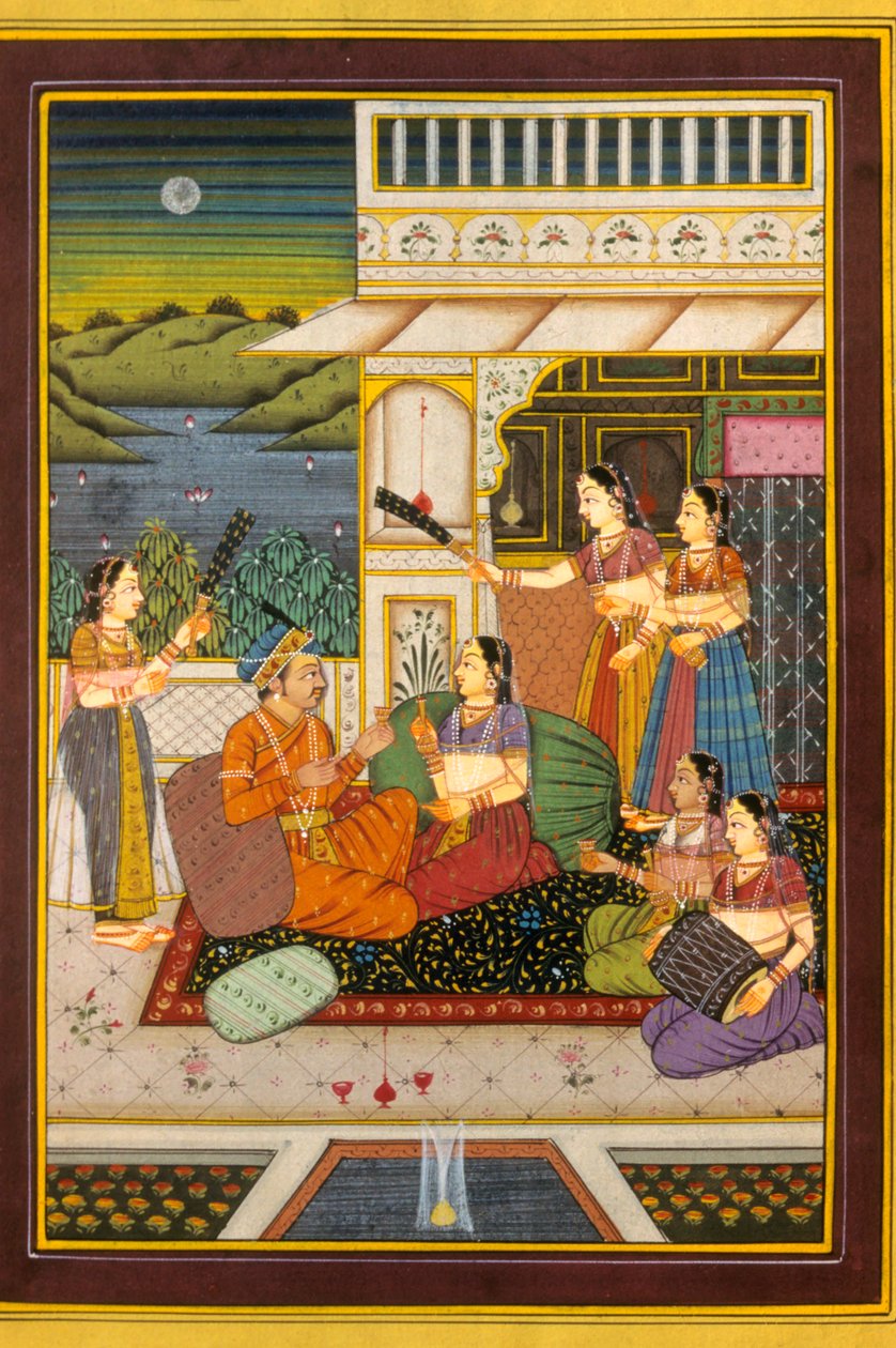 Mughul miniatyyrimaalaus, Rakkauskohtauksia, Intia(Mughul Miniature Painting, Love Scenes, India)School Indian |