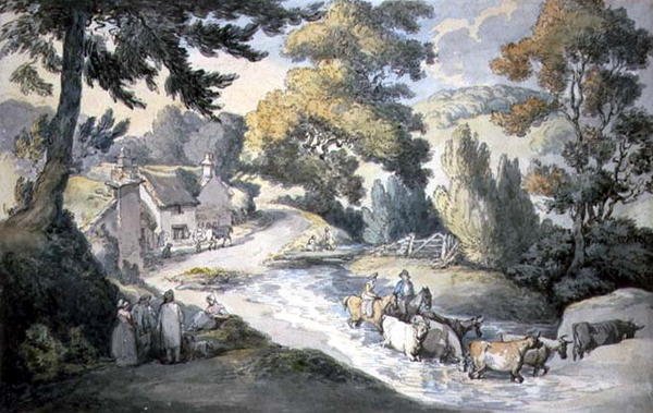 Maisema nautakarjan kanssa virtaamassa(Landscape with Cattle Fording a Stream)Thomas Rowlandson |