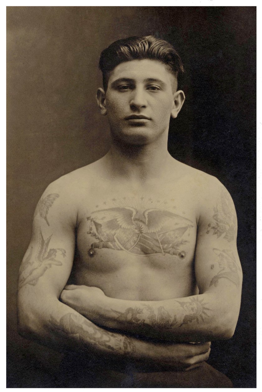 Muotokuva tatuoidusta amerikkalaisesta sotilasta n. 1915(Portrait of a tattooed American Soldier c.1915)Unbekannt Unbekannt |