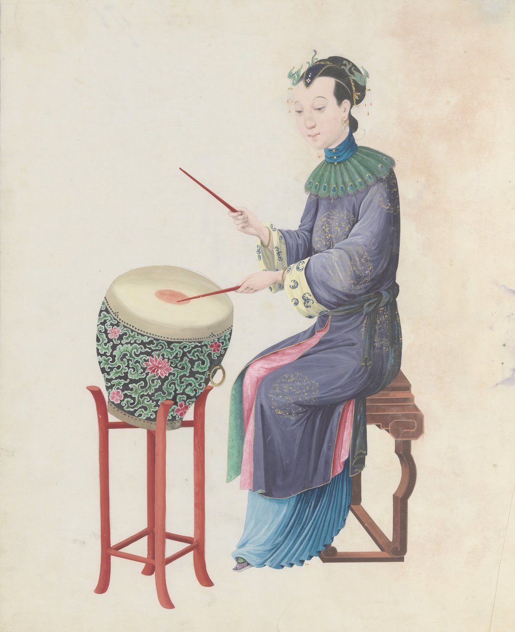Rumpua soittavan muusikon akvarelli, 1700-luvun loppu.(Watercolour of musician playing drum, late 18th century. )Unbekannt |