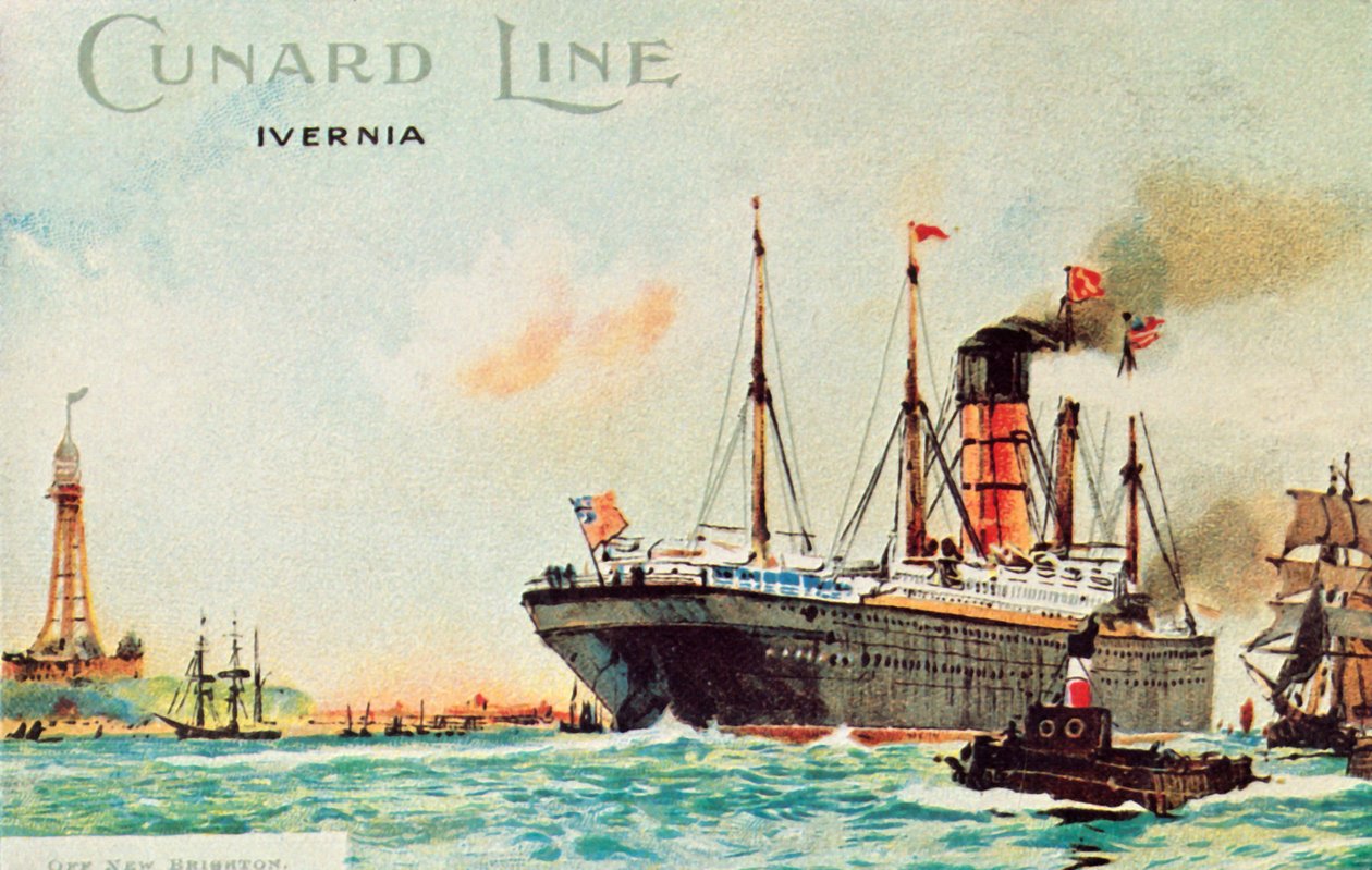 Cunard Line - Ivernia, New Brightonin edustalla, c1910.(Cunard Line - Ivernia, off New Brighton, c1910. )Unbekannt |