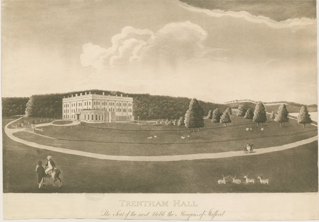 Trentham Hall: akvatintakaiverrus(Trentham Hall: aquatint engraving)Unbekannt |