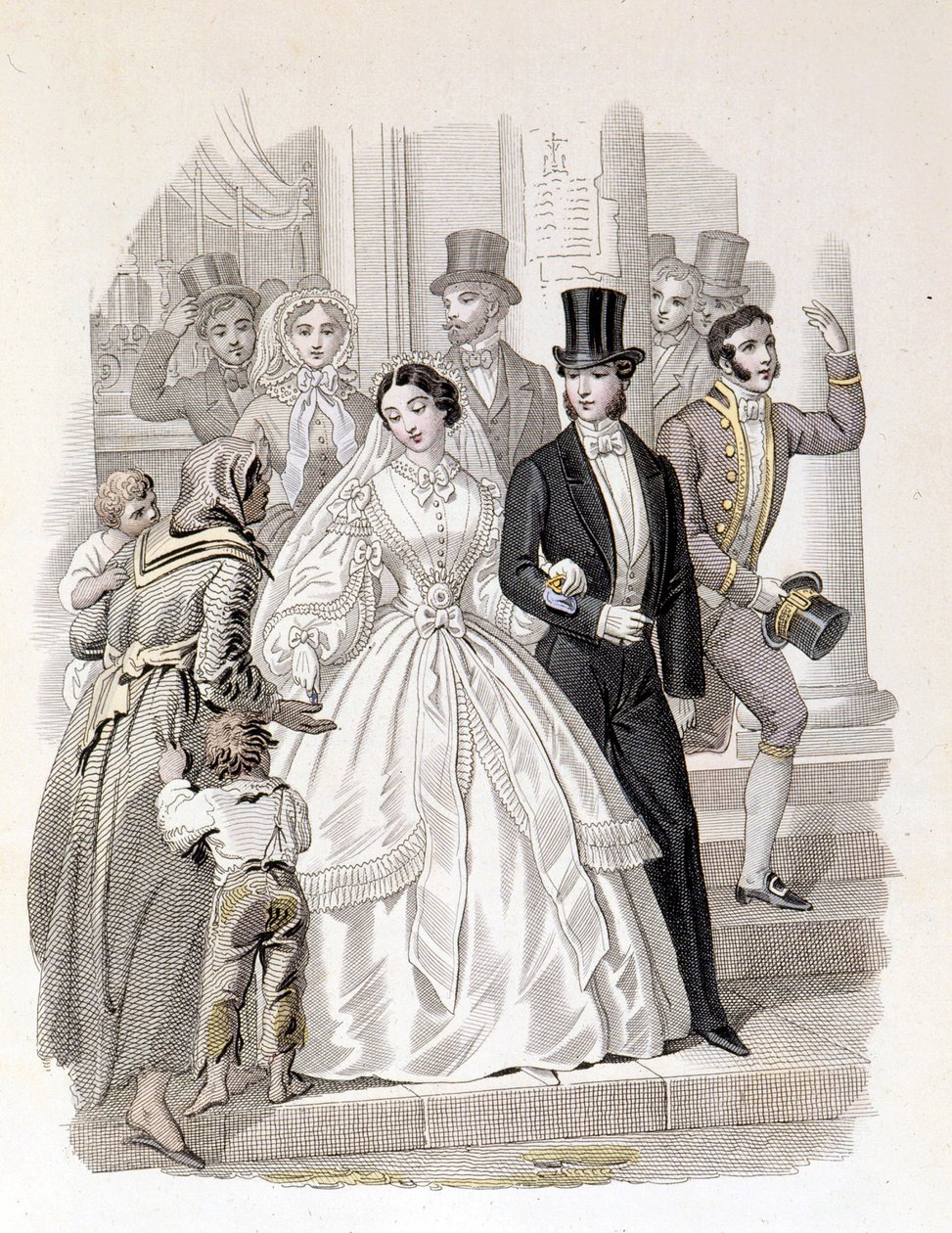 Porvarilliset häät, kaiverrus vuodelta 1860.(A bourgeois wedding, engraving from 1860.)Unknown artist |