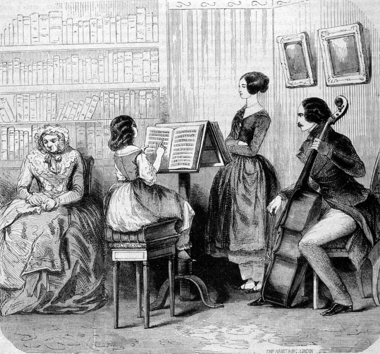 Perhekonsertti, kaiverrus noin 1860.(A family concert, engraving around 1860.)Unknown artist |
