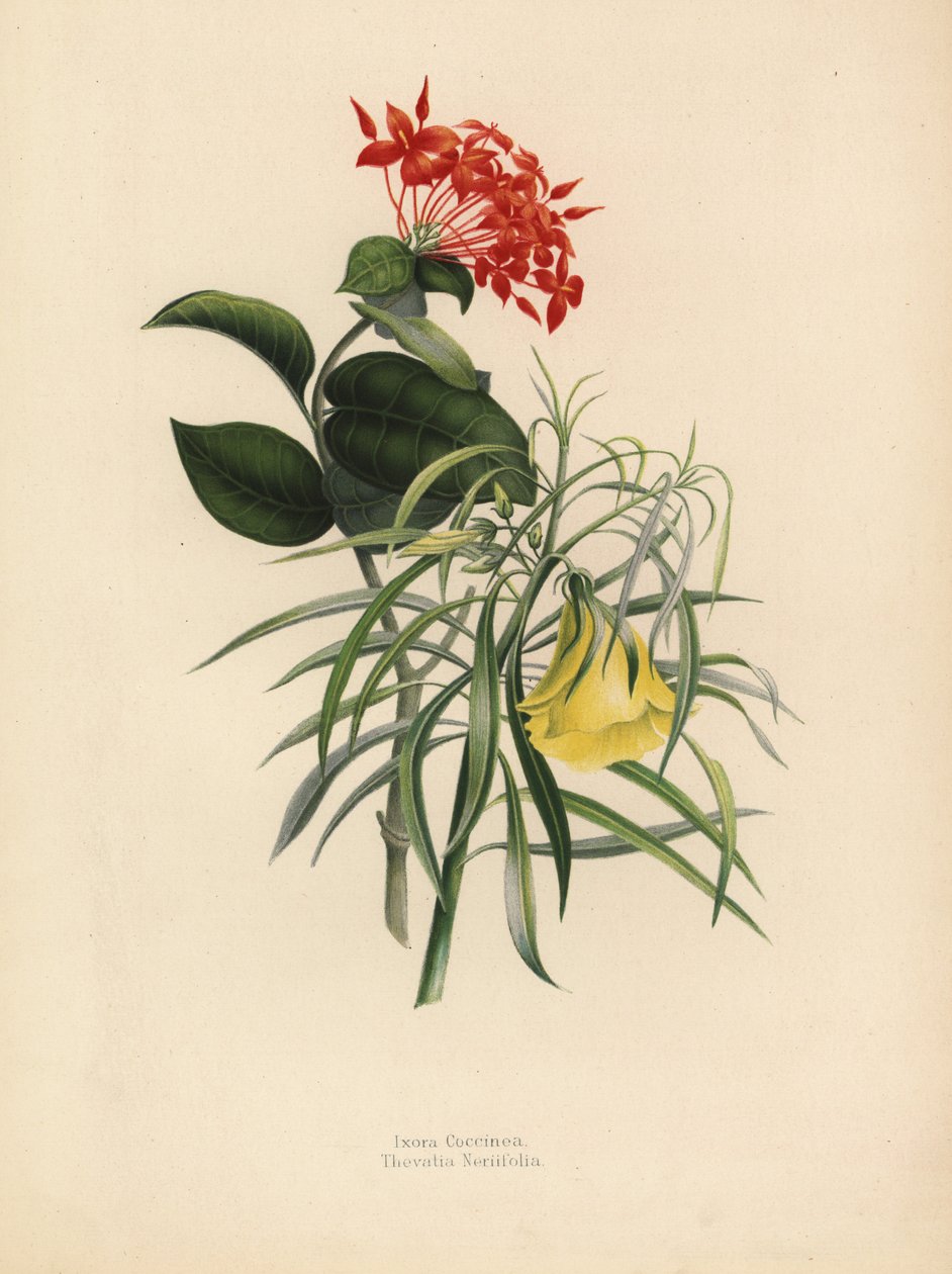 Viidakkogeranium, Ixora coccinea ja keltainen oleanteri, Thevetia neriifolia, Cascabela thevetia(Jungle geranium, Ixora coccinea, and yellow oleander, Thevetia neriifolia, Cascabela thevetia)Unknown |