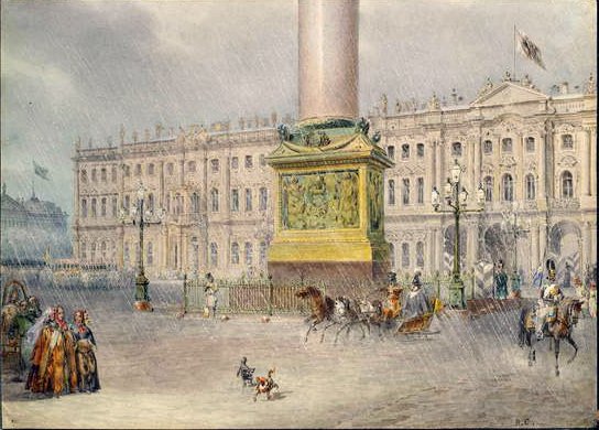 Palatsiaukio Pietarissa, 1830-luku(Palace Square in St. Petersburg, 1830s )Vasili Semenovich Sadovnikov |