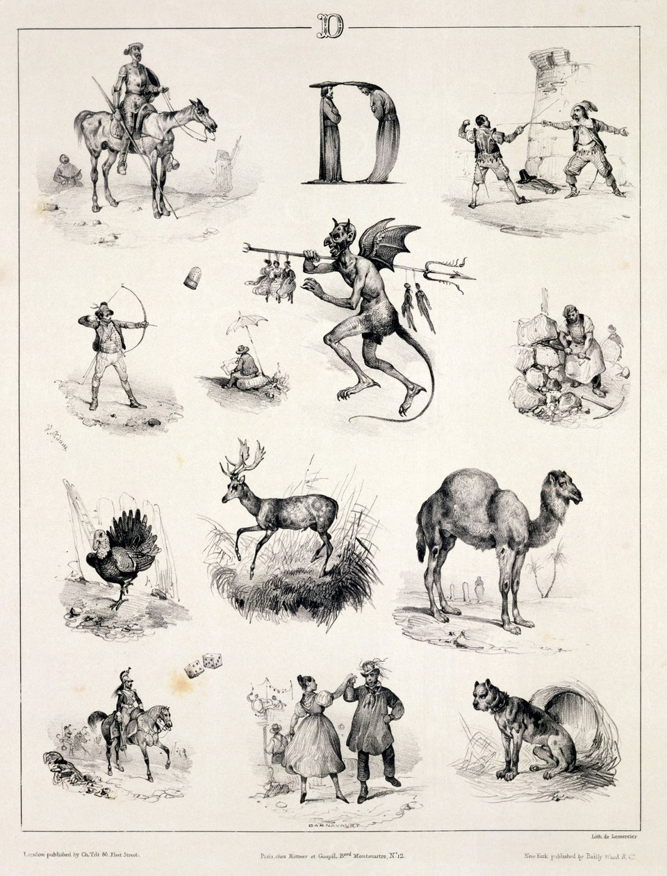 Kirjain D aakkosten alukkeesta, 1832(Letter D from an alphabet primer, 1832 )Victor Adam |