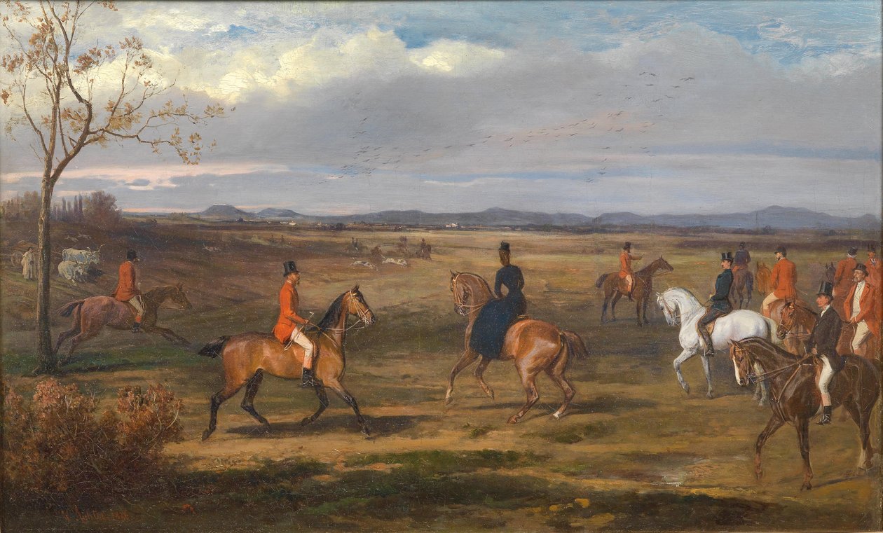 Keisari Franz Joseph I ja keisarinna Elisabeth metsästysseurueineen / Hovin metsästys Unkarissa(Kaiser Franz Joseph I. und Kaiserin Elisabeth mit Jagdgesellschaft / Hofjagd in Ungarn)Wilhelm Richter |