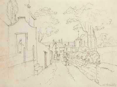 Sketch of a Woman near a Cottage