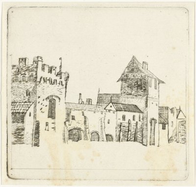 Gezicht op een kasteel met een s...
