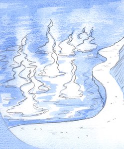 Katolisen sielu on lähes eloton - kuin valtava sulava jääpeite, joka ei kykene tarjoamaan elämää - jos siinä ei ole ilmeistä rakkautta Jeesukseen, erityisesti Jeesukseen sakramentissa, 2004 (akvarelli paperille).