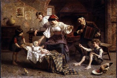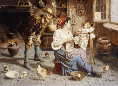 Firenzeläisvuosinaan Eugenio Zampighi loi myös suuren maalauksen Modenan akatemialle. Maalaus perustuu Giacomo Leopardin, yhden 1800-luvun arvostetuimmista italialaisista kirjailijoista, runoon, ja se oli hyvin suosittu, ja se toi hänelle lopulta Akatemian professorin kunniatittelin. Tyypillisempiä olivat kuitenkin maalaukset, kuten A New Friend, jossa nuori äiti pitää vauvaansa sylissään, kun vanhempi mies ojentaa lapselle leluapinan. Kohtaus itsessään ei ole erityisen merkittävä, mutta hahmot vaativat katsojan huomion, koska he näyttävät olevan niin täydellisesti kiinni hetkessä, aivan kuin kamera olisi vain kuvannut suoraa perhekohtausta. Osa tästä välittömyydestä johtuu maquis'n tai vaaleiden ja tummien laikkujen käytöstä, joita käytetään hahmomuotoisten muotojen luomisessa, mutta Eugenio Zampighin kunnioitus kohdettaan kohtaan muuttaa tämän teoksen nokkelasta genremaalauksesta pysyvämmäksi tallenteeksi ikimuistoisesta perheenjäsenten välisestä vuorovaikutuksesta. Vastaavasti Eugenio Zampighi esittää maalauksessaan The Latest News huvittavan kohtauksen, jossa kaksi munkkia vaihtaa juoruja cappuccinon äärellä, mutta samalla hän kunnioittaa heidän inhimillisyyttään.