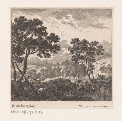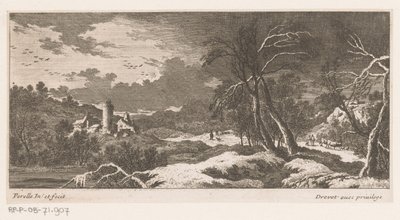 Landschap met bomen en reizigers...