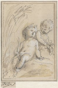 Twee putti met medaillon, waarin...