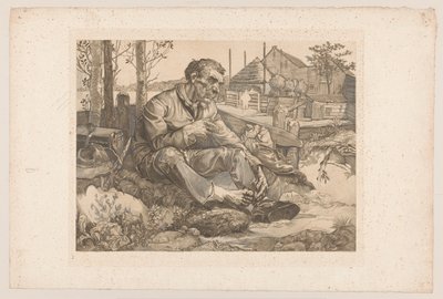 Twee dijkwerkers, de een zittend...