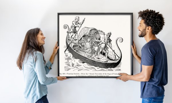 Venetsialainen gondoli, Venetsian dogen suurkulkue, kuvitus tieteestä ja kirjallisuudesta keskiajalla ja renessanssilla, kirjoittanut ja kaivertanut Paul Lacroix, 1878 (