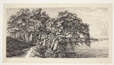 Landskab med piletræer ved et va...