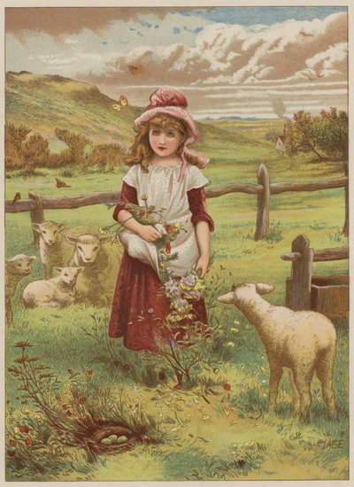 Girl with spring lamb (chromolitho)