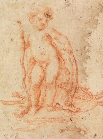 Drawing, Cupid raising bunches o...