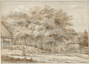 Bosweg met twee huizen