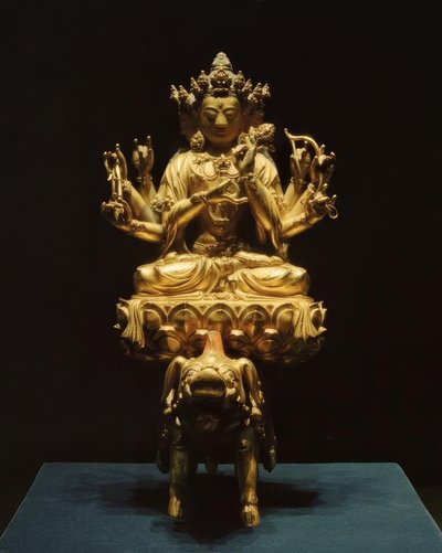 Tapestry with golden lions and p...